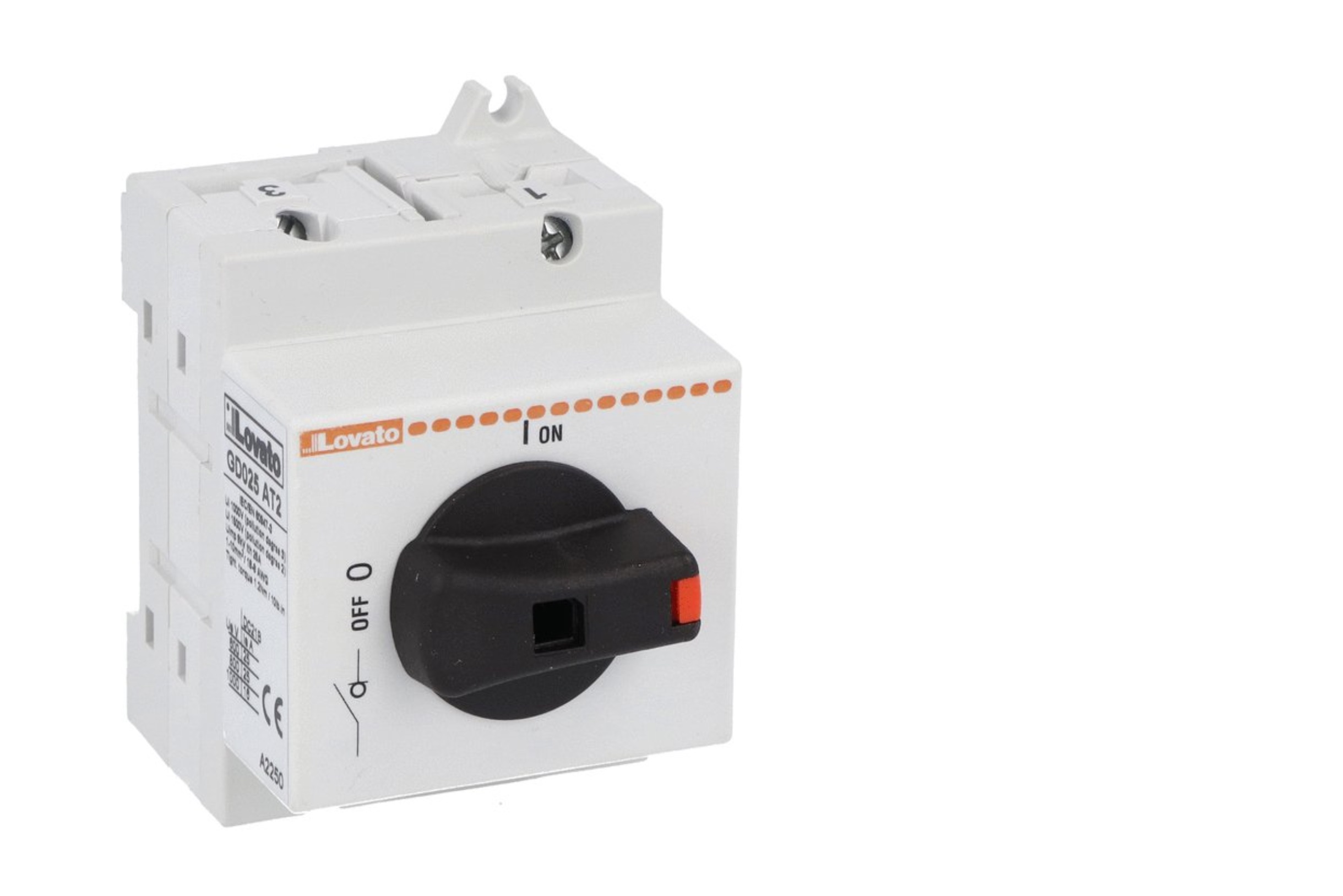 LOVATO DC odpínač pro fotovoltaiku, 16A 1000V DC1, (2P, póly zapojit do série)