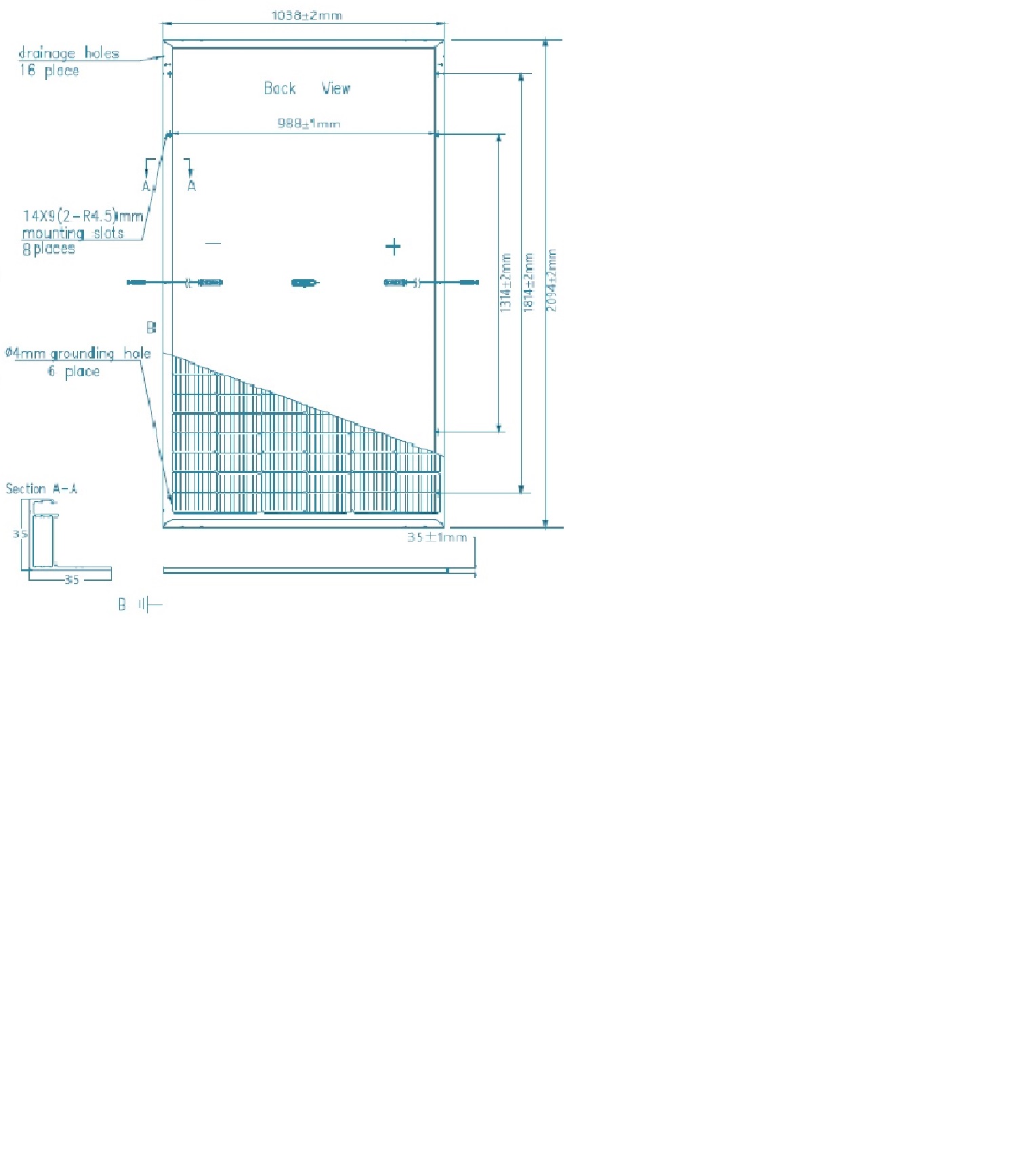 Monokrystalický modul s výkonem 550 Wp, vyrobený s využitím technologie half-cut-cells, se 11 sběrnicemi (bus bars), s účinností 21,28 % a s kladnou tolerancí výkonu. Odolný proti solným mlhám, amoniaku, písku a kroupám. Odolnost vůči větru až 3800 Pa a zatížení sněhem až 5400 Pa.