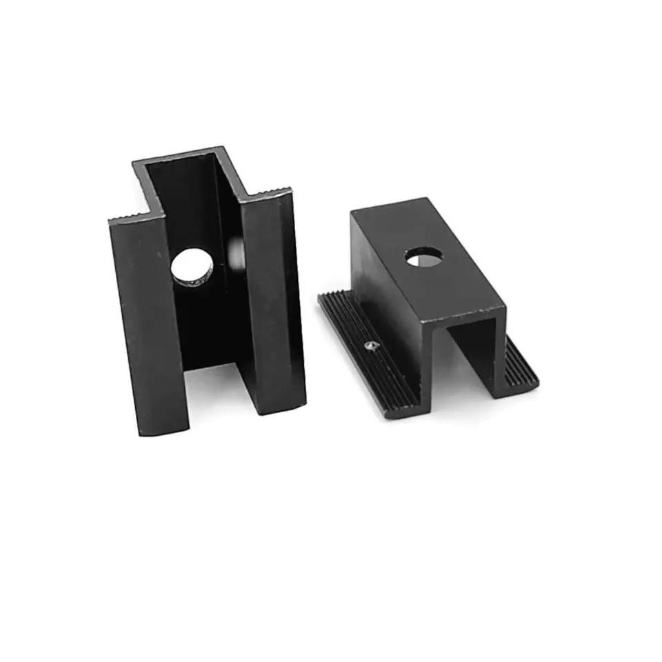 Úchyt solárních panelů do profilu vnitřní černý sotvorem pro uzemnění. Materiál Aluminium; rozměry úchytu 50x25mm tloušťka 25mm; váha 0,048kg