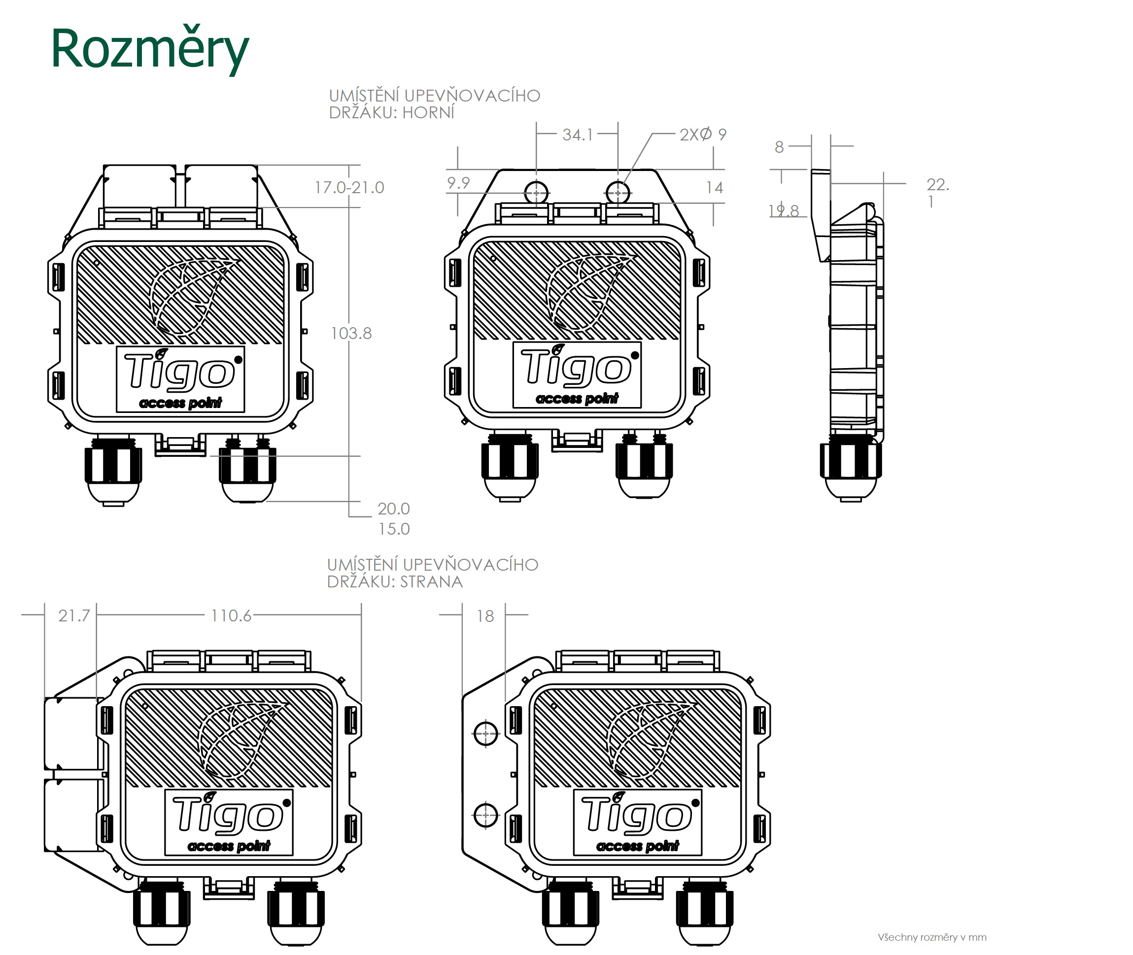Přístupový bod Tigo (TAP) zlepšuje správu dat vašeho solárního pole bezdrátovou komunikací s inteligentními moduly Tigo a dodatečně montovanými zařízeními. Přístupový bod TAP také výrazně zvyšuje bezpečnost s deaktivací na úrovni modulu. Po spárování s jednotkou Cloud Connect Advanced (CCA) poskytuje přístupový bod TAP bezkonkurenční přehled o vaší solární instalaci.